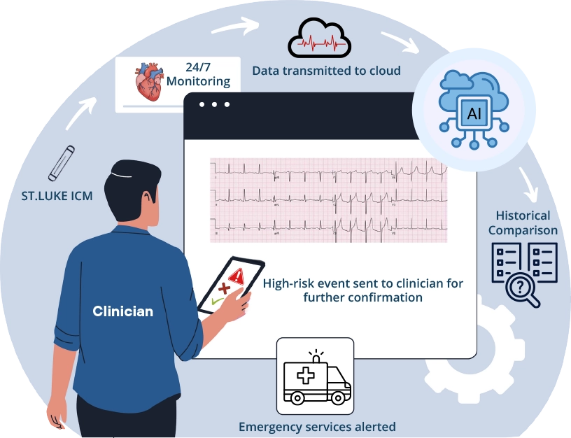 Alerts generated by the system are reviewed by licensed cardiology professionals who interpret findings in the context of each patient’s clinical profile.